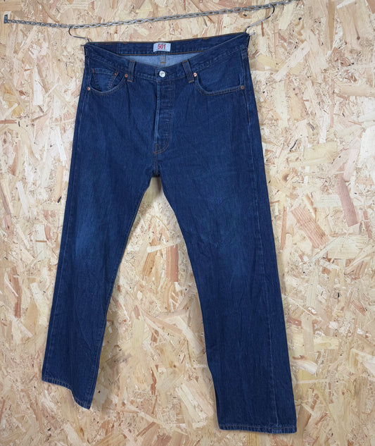 Levis 501 Straight Leg Blue Jeans Button Fly 38W 32L