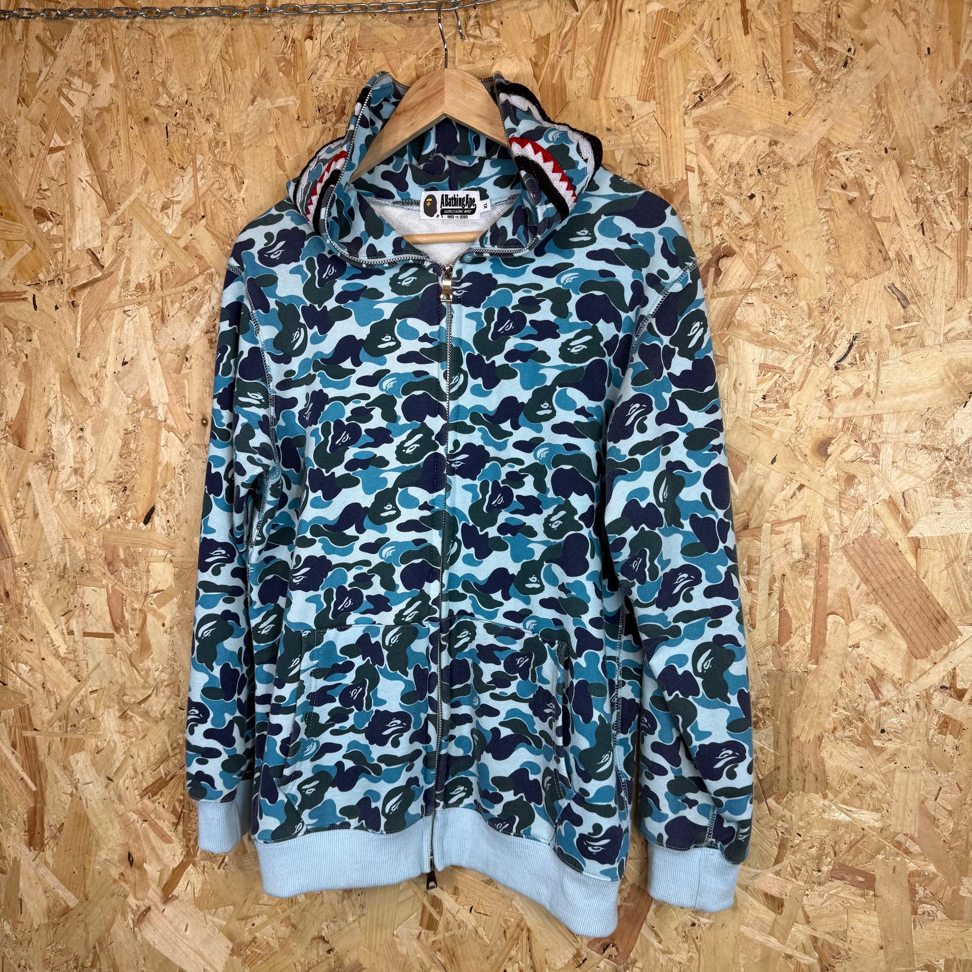BAPE Blue Full Zip Shark Hoodie Size M