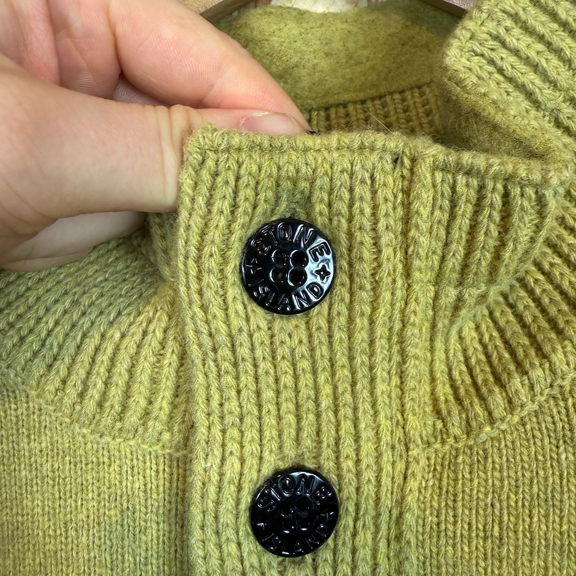 Stone Island Lime Green Wool Knitted Pull Over Quarter Zip Size 2XL